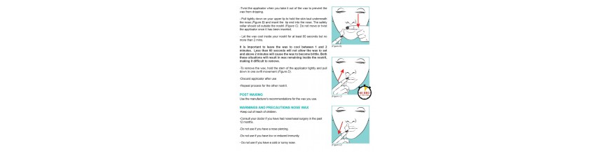 These wax applicators are specially designed to allow insertion, but a safety collar reduces the risk of over-insertion and consequent disruption of sensitive membranes that line the nasal cavity. These membranes have physiological functions within the nasal cavity and should not be disturbed.