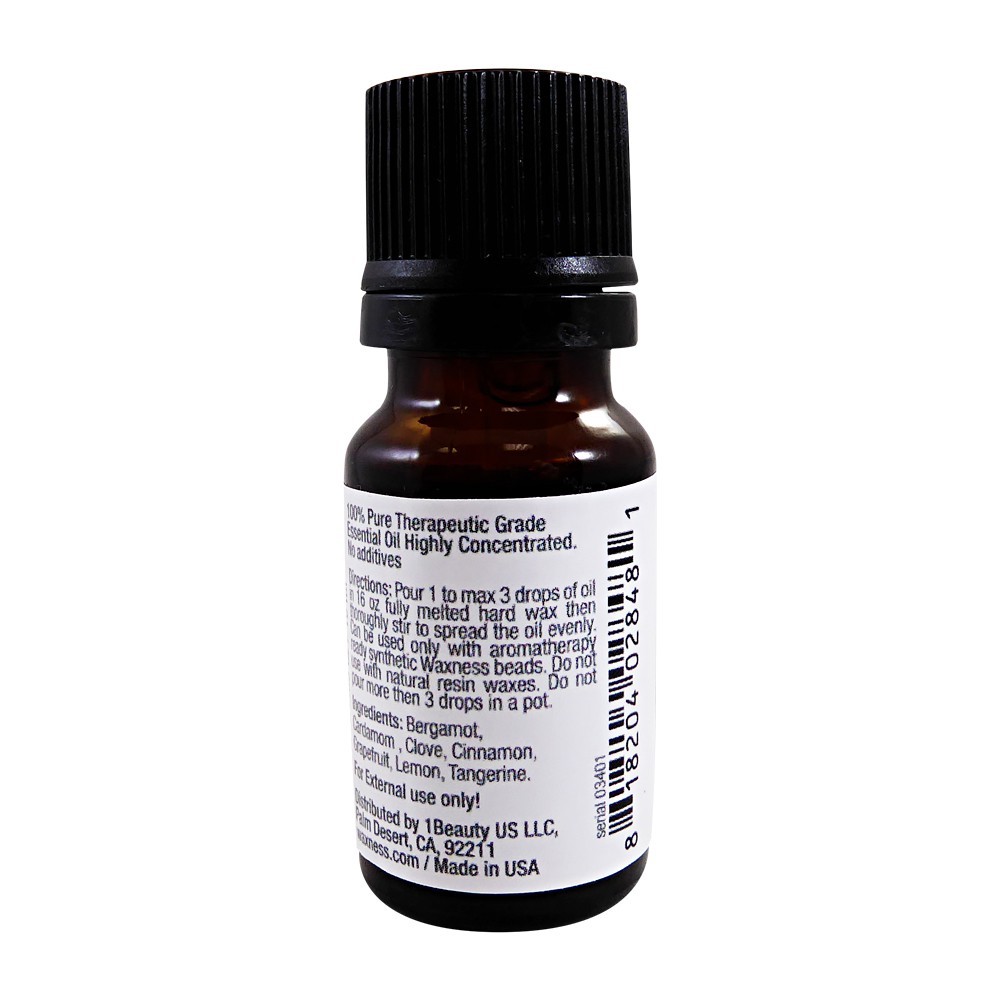Ingredients:100% Pure Essential Oil Bergamot, Cardamom, Clove, Cinnamon, Grapefruit, Lemon, Orange, and Tangerine