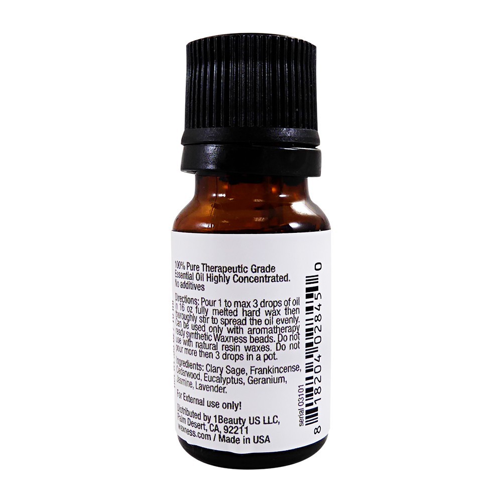 Waxing: Pour 1 to max 3 drops of oil in 14 ox of fully melted hard wax then thoroughly stir to spread the oil evenly. Can be used only with aromatherapy ready Waxness synthetic wax beads. Do not use with natural resin waxes. Do not pour more then 3 drops in a pot. Do not use if customer has allergy at natural resin wax or other natural component of the oil.