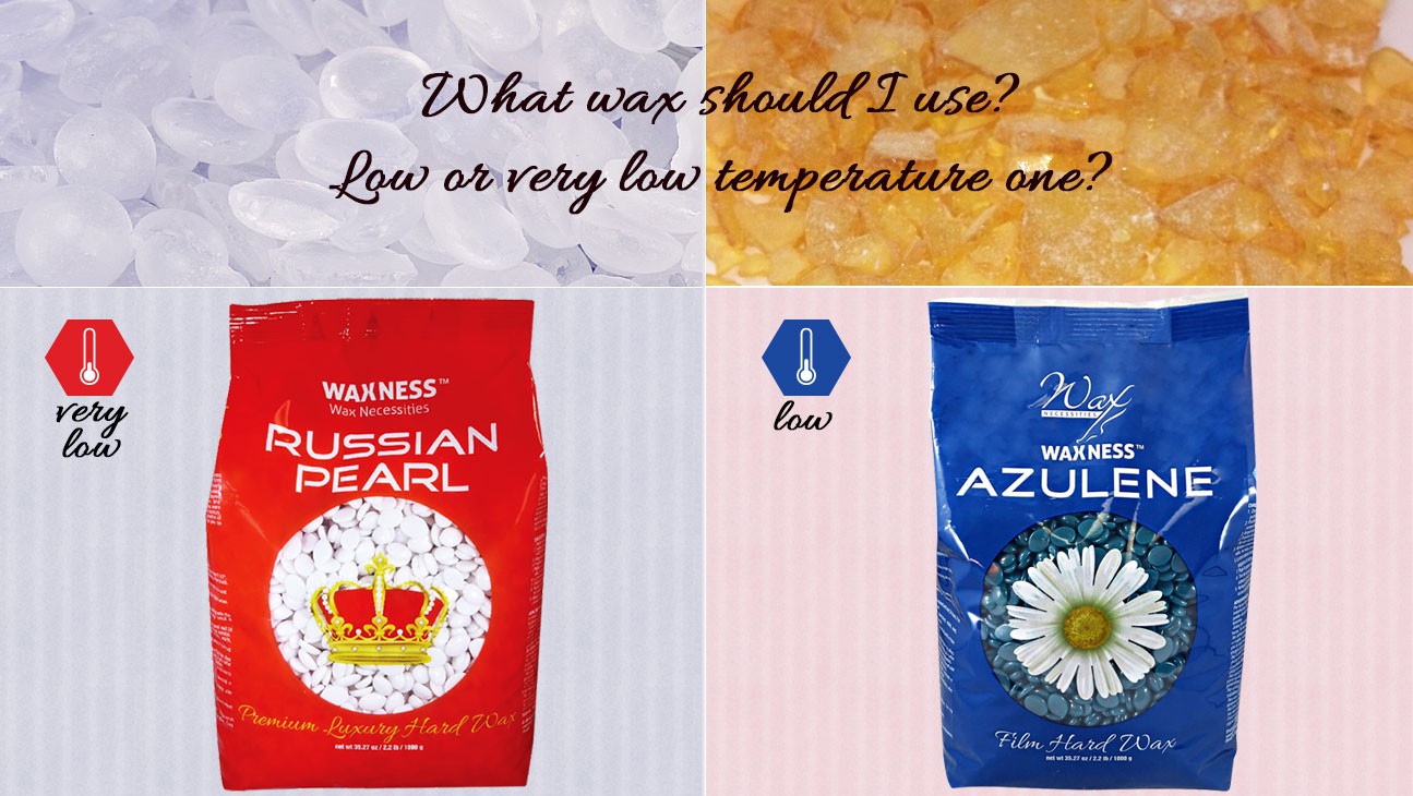 As a general rule the natural resin polymer blend waxes such as Natural, Azulene, European Blue, White Tea have higher melting points then the synthetic polymer blends, Russian Pearl, Crystal, Charcoal. Also creamy waxes have a slightly higher melting point then the translucent ones.