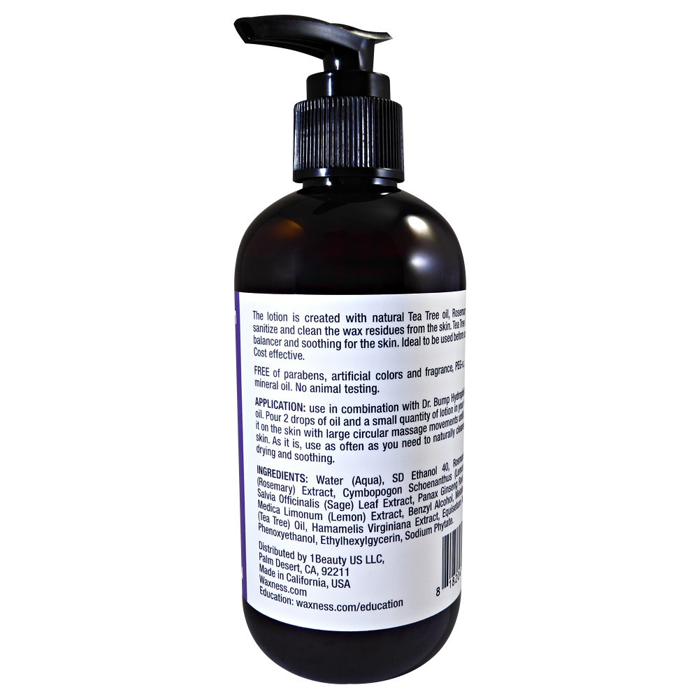 Application: use in combination with Dr. Bump Hydrophilic non clogging oil. Pour 2 drops of oil and a small quantity of lotion in your hand then apply it on the skin with large circular massage movements until absorbed in the skin. As it is, use as often as you need to naturally cleanse the skin. Non drying and soothing.<br>