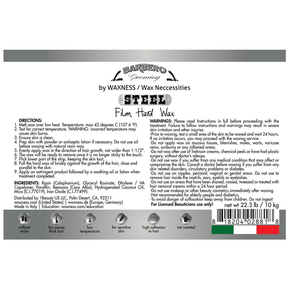 Men's hair are stronger but the skin can be very sensitive. This depilatory hard wax is specially created for men. Special components added to increase the adherence of wax will assure a clean waxing of coarse, thick man hair. Use applicator. No stripes removal. WARNING: Professional Use Only! Test on a small area before use. If rush develops discontinue use. Read all the warnings and instructions on the product label before use. Do not heat above max temperature.