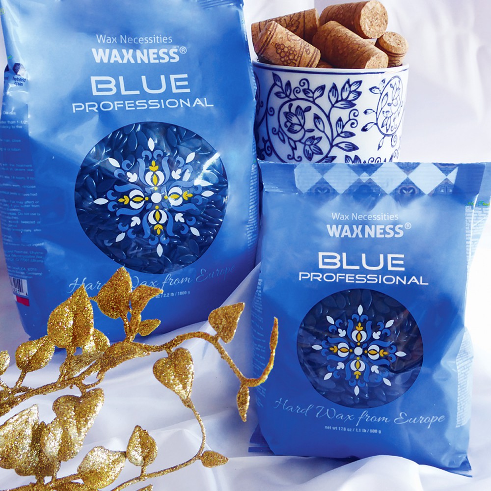 Waxness Blue Professional Original is a professional-grade, hybrid resin wax from Europe. It is characterized by high flexibility and plasticity, a strong grip on the hair, and very low adhesion on skin.