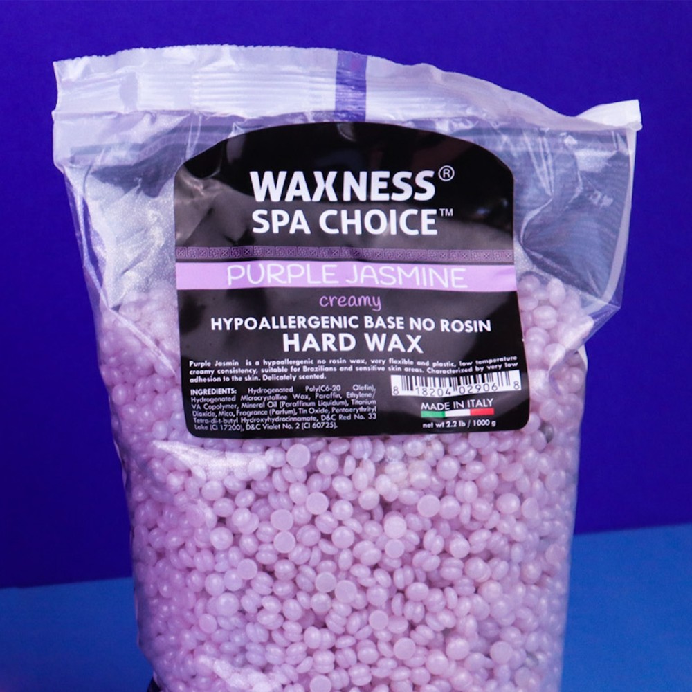 Purple Jasmin is a hypoallergenic no rosin wax, very flexible and plastic, low temperature creamy consistency, suitable for Brazilians and sensitive skin areas. Characterized by very low adhesion to the skin. Delicately scented. This demi creamy wax it is the perfect choice for all areas use, having the perfect balance between creamy and translucent.