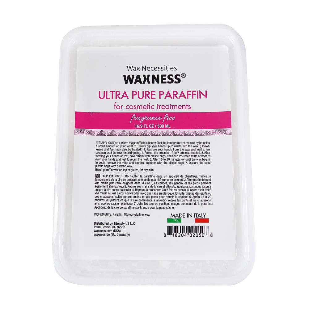 Ultra pure paraffin fragrance free for cosmetic treatments. 16.9 fl oz/ 500ml block.