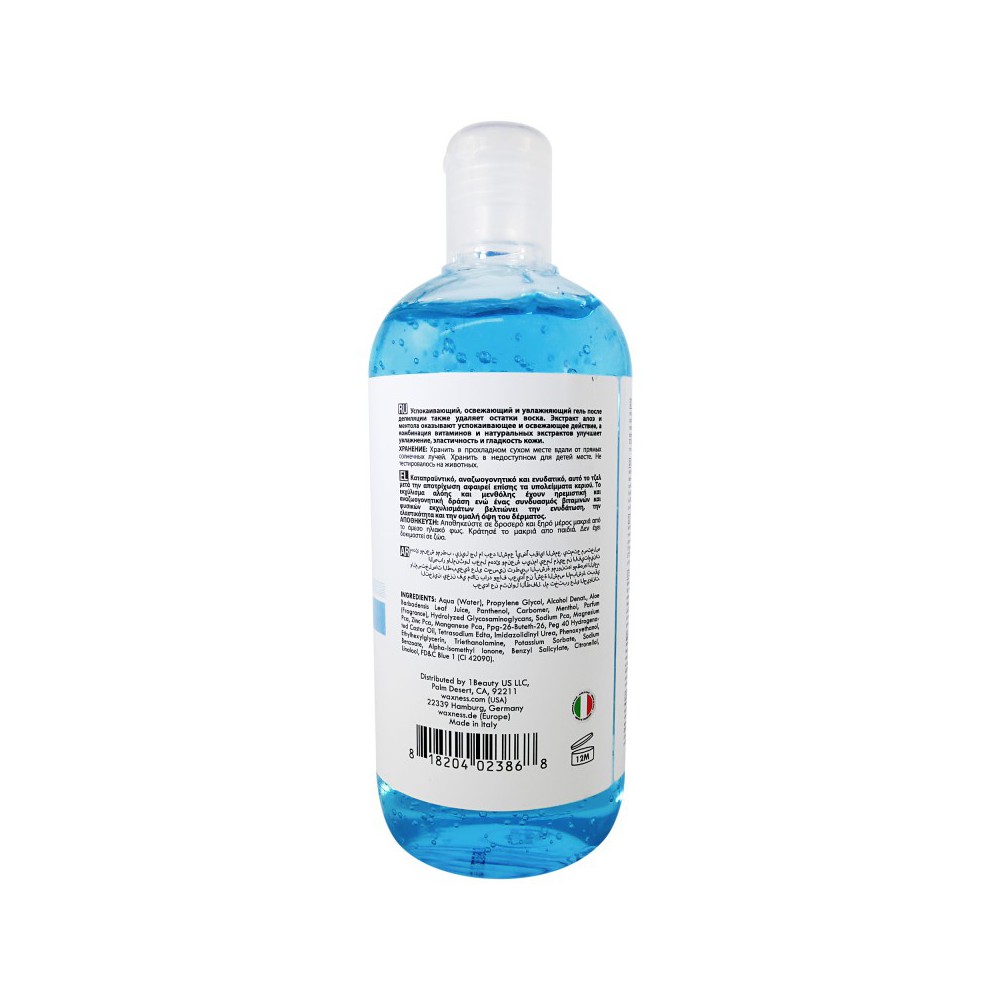 Soothing, refreshing, and moisturizing, this post waxing gel also removes wax residues. Menthol and Aloe extract have a calming and refreshing action while a combination of vitamins and natural extracts improve the skin's hydration, elasticity, and smooth appearance.