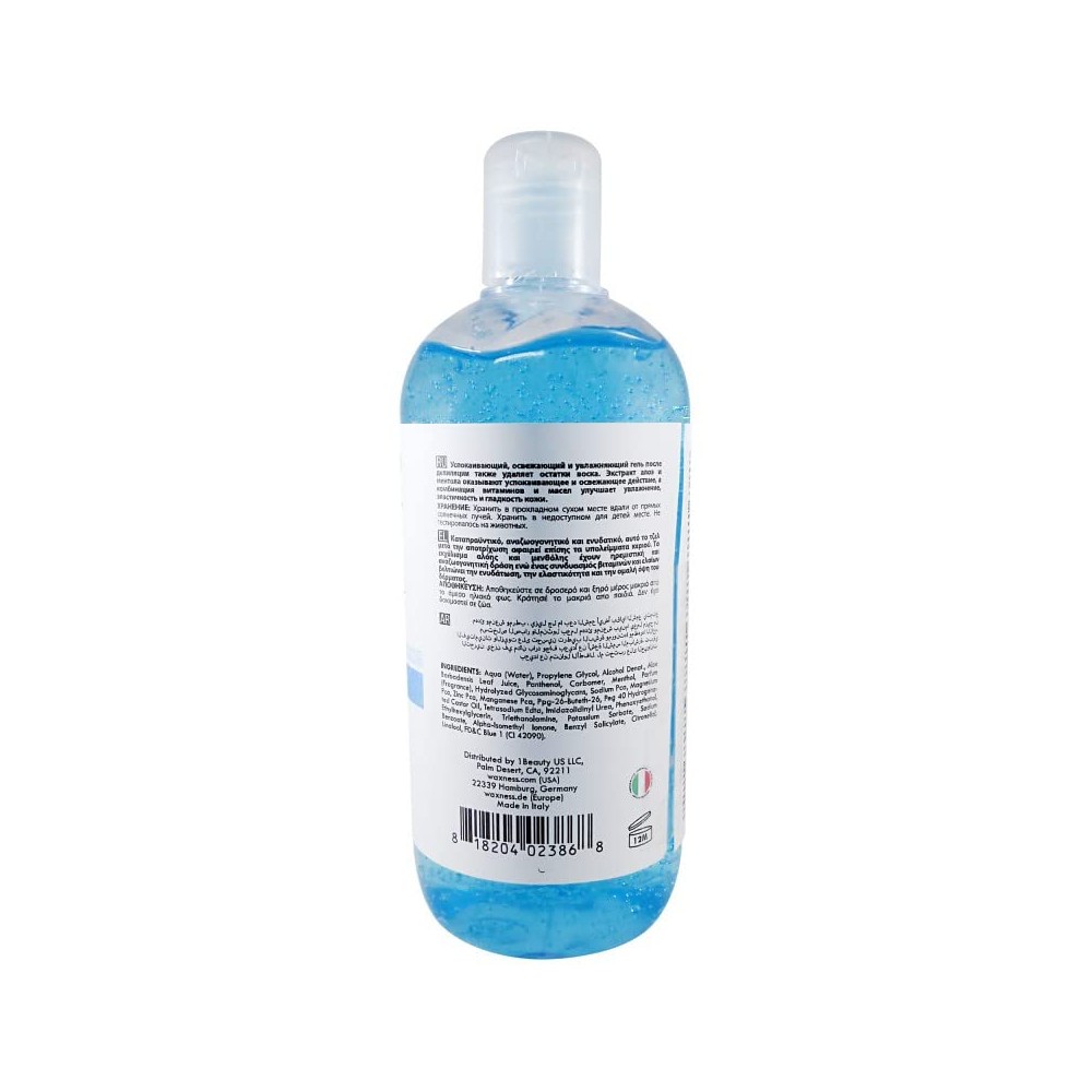 Soothing, refreshing, and moisturizing, this post waxing gel also removes wax residues. Menthol and Aloe extract have a calming and refreshing action while a combination of vitamins and natural extracts improve the skin's hydration, elasticity, and smooth appearance.