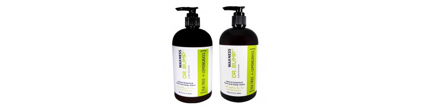 Dr. Bump natural botanical hand and body wash with Tea Tree oil is recommended for daily use on skin that is regularly waxed or shaved. The blend of natural botanical ingredients creates a gentle velvety foam suitable for frequent use. No synthetic colors and fragrance. Not tested on animals.