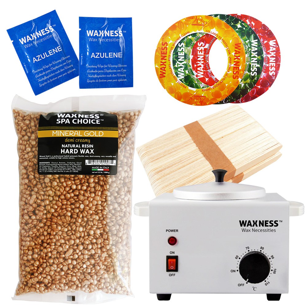 Waxness Spa Choice Mineral Gold is a superior hybrid polymeric flexible depilatory wax, demi-creamy, very versatile and economical, suitabe for high volume waxers. This demi creamy wax it is the perfect choice for all areas use, having the perfect balance between creamy and translucent