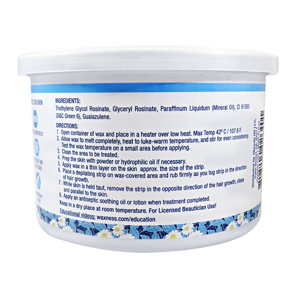 Transparent wax. Contains wild chamomile extract, characterized by antiseptic properties. Due to its dark color this wax is well visible on the skin. Created for removal of thin, light hair, characterized by great adhesion, applied in a thin layer and effectively remove hairs.
