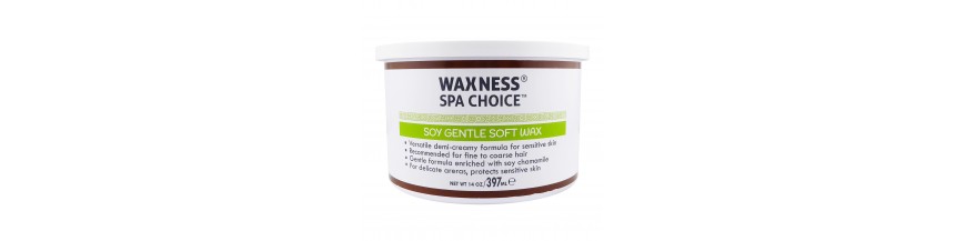 Waxness Spa Choice Soy Gentle Soft Wax is formulated for fine and coarse hair and sensitive skin. It is a very versatile wax, that can be used on all body parts. Due to its high content of oils and emollients, it protects sensitive skin while creating a strong grip on the hair. A shimmery golden color is highly visible on the skin making it easy to remove residues after waxing