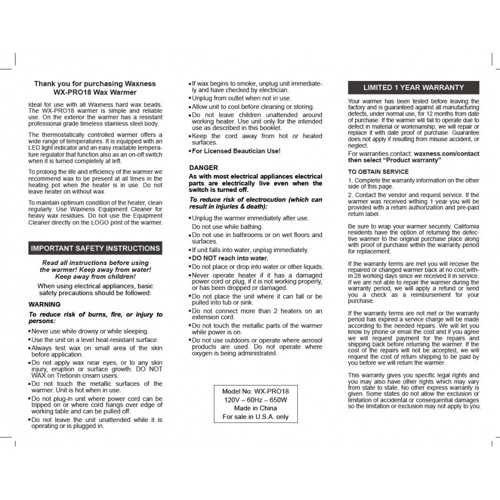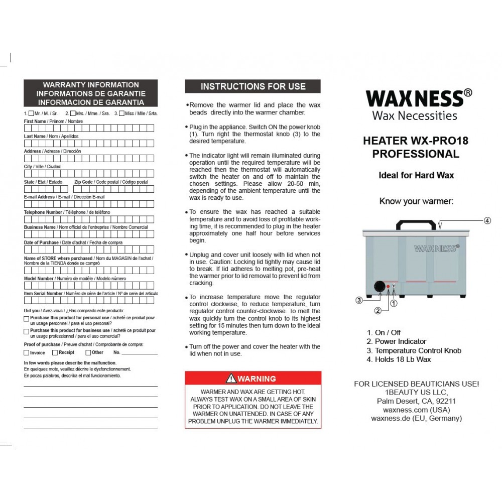Large Professional Heater WN-6002 Holds 5.5 lb Wax